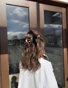 大切なご友人の結婚式に参列するため、ご来店されたお客様のヘアセットをさせて頂きました。